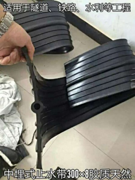 外贴式橡胶止水带也叫做背贴式橡胶止水带,规格多种多样,我公司可根据客户来样定尺加工,背贴式止水带的应用虽然不及中埋式止水带广泛,但随着对工程质量的严格要求,也在慢慢的受到重视.外贴式止水带按材质可分为外贴橡胶止水带和外贴塑料止水带,按施工位置可分为EP中间无孔型外贴止水带和EB中间有孔型外贴止水带。在隧道施工中以橡胶材质为主,但这一行业经过近几年的发展, 开发出了塑料外贴止水带,其优势在于采用与同一工程部位采用的防水板为同一材质,因为这样可使得防水板与止水带焊接为一体,保证了在防水板吊装和止水带安装中便捷与牢固,同时防水效果也大大加强。水利工程防水上还是以橡胶材质为主。因为橡胶具有较好的利用高弹性,在各种荷载下产生弹性变形,从而起到坚固密封,有效地防止建筑构造的漏水,渗水并起到减震缓冲作用。在许多工程建筑设计中,土建、水土结构之间都有一定的伸缩要求,并存在防水防震等问题,因此采用和安装橡胶止水带是有效地解决以上种种问题的手段