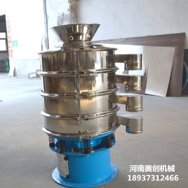 产品简介: 旋振筛的基本原理是通过利用在电机轴上下安装的两个不平衡重锤,将电机的旋转运动转变为一种复杂的水平、垂直、倾斜的三次元运动,再把这个三次元运动传递给筛面,使物料在筛面上做螺旋状由里向外的渐开线外扩散运动。