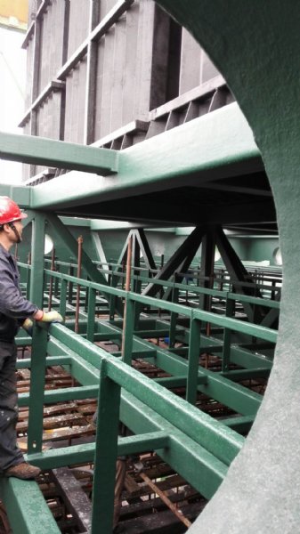 主要检查项目为:①设备结构能否进行鳞片衬里施工(如设备内部的局部结构存在狭小的缝隙,施工工具无法深入其中),②焊缝的打磨,要求焊缝的高度不高于基体0.5mm,且与基体保证平滑过渡,③阴阳角的部位一定要保证拐角部位的圆角半径R>5mm。