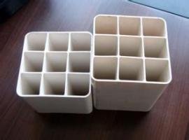 PVC四孔格栅管从四孔——九孔多种规格,外型有方型、长方形和其它异形。每根管材长度6米(或按用户需要)。PVC四孔格栅管质量(管材、接头和密封等)均达到Q/KW02-2005标准,PVC四孔格栅管经信息产业部电工也产品质量检测中心测试合格。PVC四孔格栅管年生产量600万米。