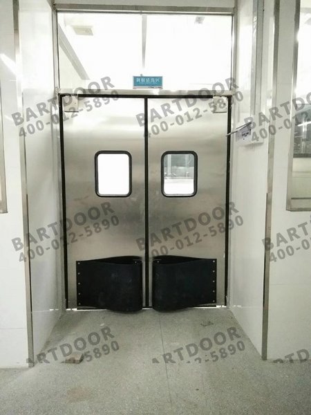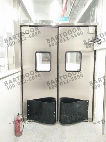 2、不锈钢自由防撞门四周镶胡橡胶封条,具备了防虫,隔尘,隔风,隔异味的功能,从而达到提高环境卫生的功效。而传统的木质门,铝合金门具备此功效并不明显,因而不锈钢自由防撞门相比普通的门更符合卫生标准的需求。