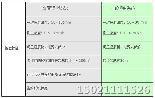 2.与一般喷射砂浆比较性能特征