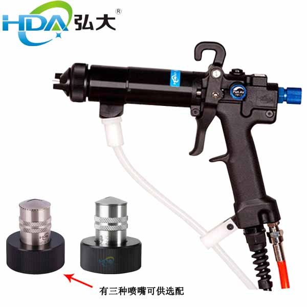 静电喷涂是利用“静电吸附环抱”物理现象的一种喷涂方式。HDA-100静电喷枪具有雾化精细、涂着效率高、使用方便等优点,其中*大的好处节省涂料成本,就是说比普通喷枪相对来说会更省漆20%~30%。