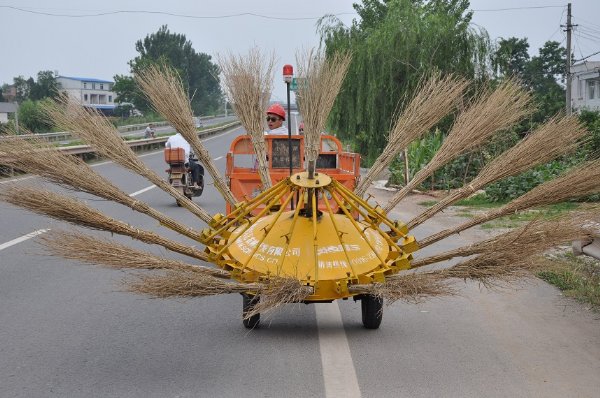 6、风火轮小型扫地车的使用灵活,可以使用不同的牵引车辆:比如:汽车,拖拉机,机动三轮车,摩托车,牛,马等适合不同的乡村道路环境(各省道、市道、县道、一些乡村道路和一些小区道路,适合于水泥路和一些沥青的道路及各种道路的清扫)和不同的地理环境使用。