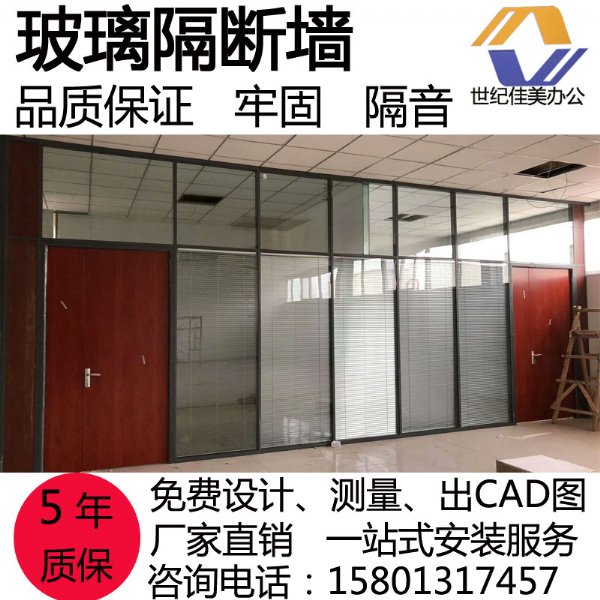 北京单层双层钢化玻璃带百叶隔断隔音高隔间墙厂家直销