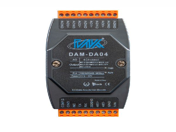 DAM-DA04 是全新一代基于嵌入式系统模拟量输出模块,可以独立输出 4 路模拟量信号;模块采用高性能 12 位 DA 芯片, 输出精度可达±0.2%。模块配置有 RS232 接口,方便与 PC 或 PLC 通信;模块配置有 RS485 接口,可单独与 PC 或 PLC 通信, 也可以与多个 485 模块组网使用。DAM-DA04 采用磁隔离技术,有效保障模块输出速度、可靠及安全;适用于各种工业控制现场。