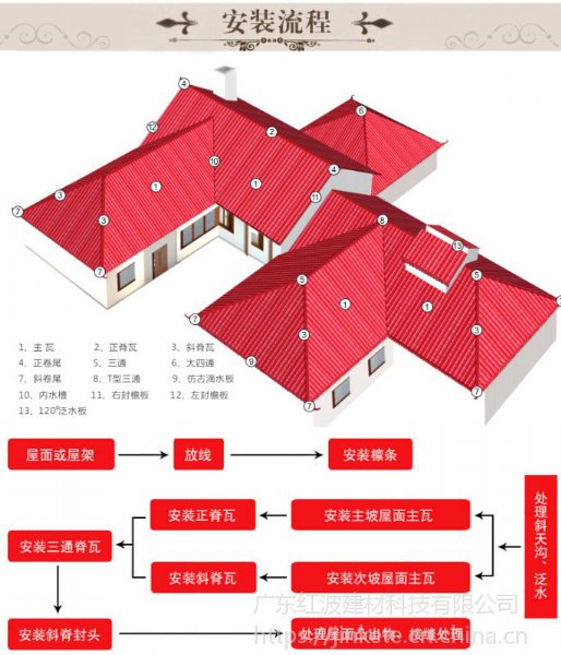 平改坡工程、钢结构房屋、别墅、移动房屋、园林楼阁农家乐、新农村建设、农村旧房改造等屋面领域。