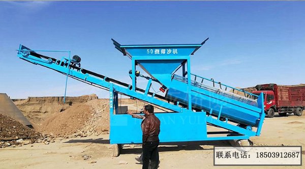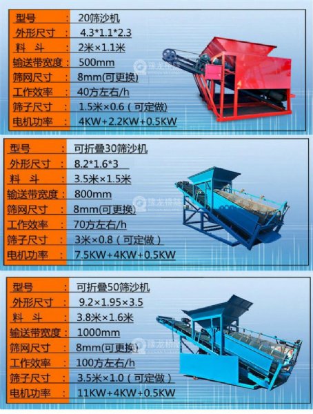 产品特点与安全操作:1、合上电闸,压上紧带轮,空转看运输带是否有跑偏现象,如有及时调整30筛沙机。2、后辊跑偏:运输带向那一侧跑偏就紧那边的丝杠,是那边的运输带后拉不要过多,边调边看知道正常。如出现运输带过紧则,放松那一边的丝杠(也就是不曾边的那一边)直到正常。3、前辊跑偏;主要受后滚的影响,一般后辊调治正常前则正常。如出现后滚正常前辊不正常,则调整中间的拖带辊,方法是;向上移一格运输带向内侧移动一点(内侧之是没有带轮那一边)。向下移动责运输带就向外移一点。直到正常。4、正常装车筛选,要先小量进料找出始终进了点,边可正常工作。5、沙料湿度20%过湿会出现后溜沙现象。