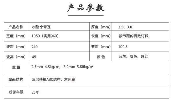 树脂小青瓦采用先进的三层共挤(A/B/C)技术一次加工而成;其中表层为ASA层,中间层为骨架层,底层为耐磨层。