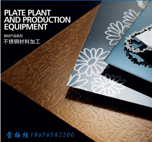 公司是一家专业从事彩色不锈钢材料、不锈钢制品销售的企业。公司致力于资源整合省掉中间商销售环节,产品直接对客户,真正实现薄利多销。主营产品有:彩色不锈钢板、不锈钢制品、不锈钢镜面板、拉丝不锈钢板、不锈钢蚀刻板、不锈钢雾化板、不锈钢压纹板、不锈钢防滑板、不锈钢电梯门套装饰板,不锈钢镀铜板、不锈钢装饰管等不锈钢装饰材料。销售方式:现代化、多样化、灵活化:可来料、来样等多元化定制方式。产品多用于豪华酒店、高档会所、不锈钢装饰工程及整体家居装饰等场所。