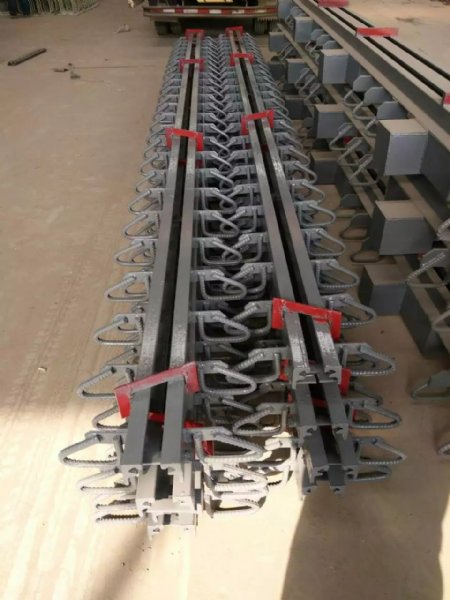钢制支承板式橡胶制品这一类伸缩装置,很难满足大位移量的要求;钢制型的伸缩装置,很难做到密封不透水,而且容易造成对车辆的冲击,影响车辆的行驶性。因此,出现了利用吸震缓冲性能好又容易做到密封的橡胶材料,与异型钢材组合的,在大位移量情况下能承受车辆荷载的模数式桥梁伸缩装置系列。