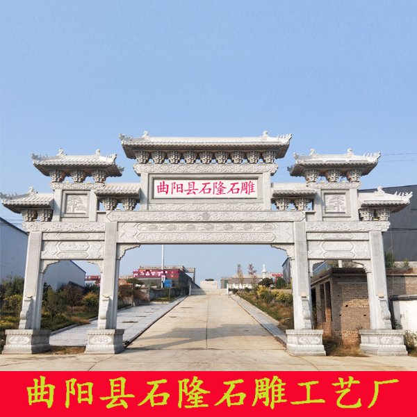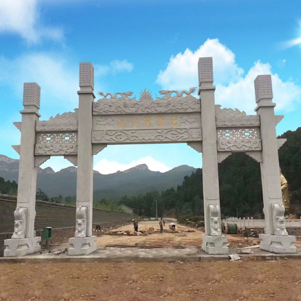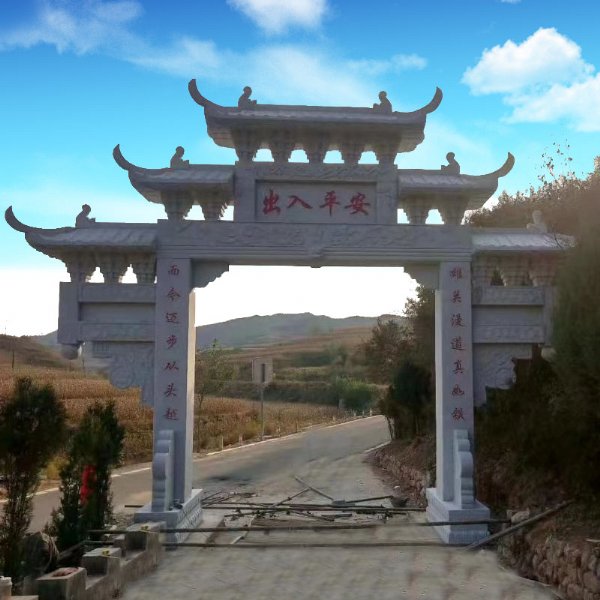 石牌楼在我们生活中的使用比较广泛,它有美观装饰作用,也叫作大理石牌楼或者石牌坊,尤其是园林、广场、村口。 乡村石牌坊成为村口标志靓点;农村村囗标志石牌楼作为新农村村庄*的形象展示。广大周边大小村庄大都建起了自己的村口标志牌楼,有立牌坊的,有放门牌石的等竞相放彩。农村石牌楼成为村口标志靓点其中*能彰显新农村精神面貌的首要标志性建筑便是村囗牌坊。在古代,石牌楼石牌坊是我国中华五千年华夏文明的像征,不仅在我国建筑史上自成一格,更将雕刻、绘画、书等多种艺术融于一身,成为中华传统文化的一个重要组成部分。