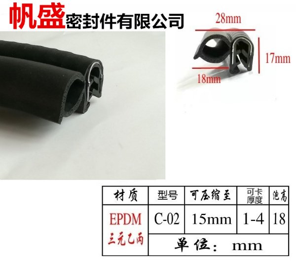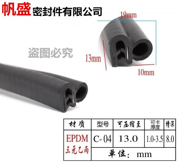 三元乙丙(EPDM)密封条采用微波硫化工艺 一次成型,表面光洁美观,具有良好的弹性和抗压缩变形,耐天候..