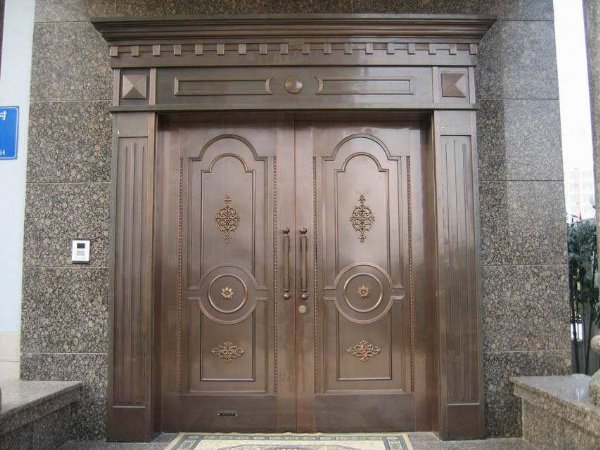 铜门的内部为钢结构骨架,外部包裹加工好的铜面板型材。易折弯塑性,不易开裂的T2紫铜带是铜门面板非常好的型材,在铜门中运用较多。铜虽然属于防腐材料,但铜门在制作中往往还会对其做进一步的防腐处理。比如,先在表面拉丝,然后进行多次表面清洗、钝化,隔断面板型材表层与腐蚀材料的接触,保持铜原有的颜色;接下来再进行不少于两次的磷化处理,在表面形成一层保护膜,这之后还要经过喷保护漆、160摄氏度烘烤、自然冷却等步骤,一樘成品铜门才能*终完成。至于门里的钢骨架,都进行了热镀锌处理,然后将铜结构焊接、安装。另外,与其他材质的门一样,铜门也要定制,工人现场勘察确定细部尺寸后,再回去根据相关数据与图形下料,然后上门安装。