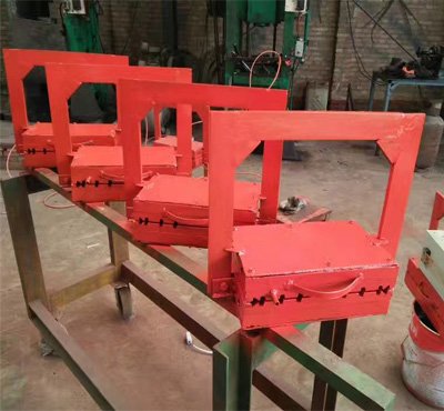 (7)用千斤顶将安放好的顶模具加压。此步骤注意的是:*一次千斤顶加压压力不要过大大,加压至模具顶模和底模之间距离在2cm左右。待熔接钢边橡胶止水带的生胶片硫化一段时间,约5~10分钟后再进行千斤顶的二次加压。