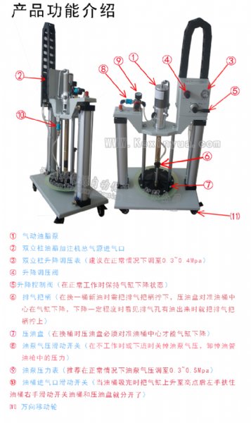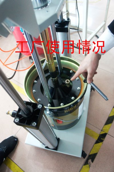 设置*压油升降机构和压油盘。和随动板不同,随动板附着在材料的表面通过板的吸附力、将材料集中到底阀周围,帮助泵吸收,所以对粘度高的材料没有效果。压油盘有强制挤压的力量。