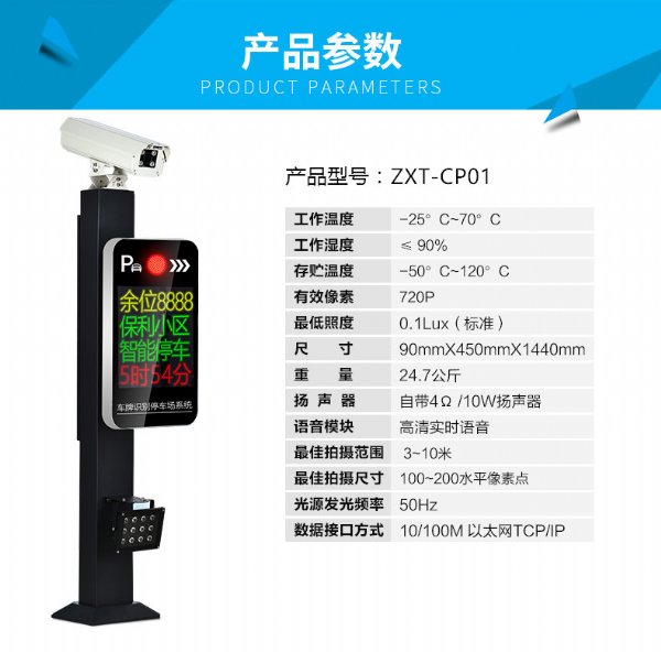 众鑫泰CP10智能车牌识别系统一体机道闸门禁停车场收费管理