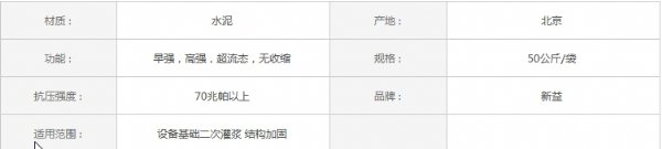 1天抗压强度20Mpa;3天抗压强度30Mpa;28天抗压强度55Mpa。
