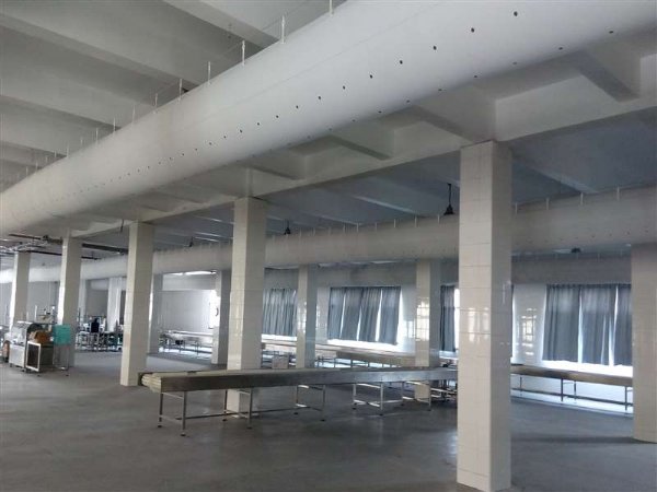 7、布袋风管:采用特种优质纤维,防水性能优越,清洗方式为工业洗衣机里清洗,可以水洗60次性能无变化。风管保温的目的在于防止能量流失及风管表面凝露。风管结露是因为风管在送风的时候,管壁内外有着比较明显的温差,当管壁温度低于空气露点温度时,湿热空气接触管壁,就会出现结露现象,而渗透式瀑布布袋风管表面都在缓慢的向外渗透出风,由于风压的作用,管外的湿热空气无法接触布袋风管管壁,故瀑布布风管表面不会产生结露现象,更无需保温材料。 - 苏州瀑布新材料有限公司