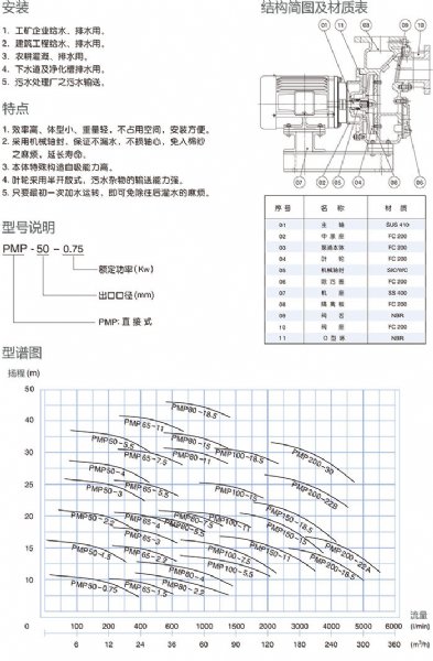 4 叶轮采用半开放式,污水杂物的输送能力强