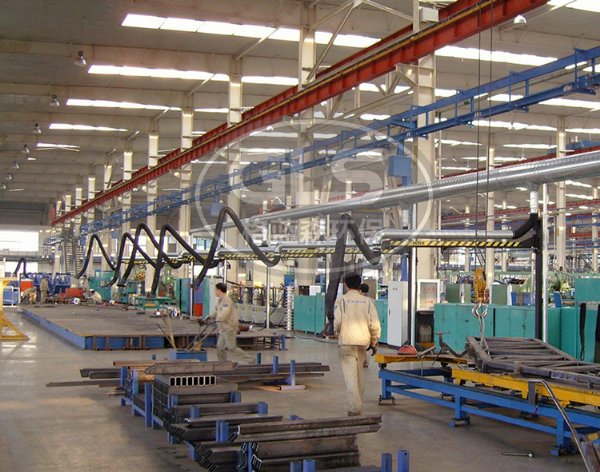 钢结构加工车间主要产生设备有数控切割机、人工焊机、埋弧焊等,这些设备在切割及焊接工作时会产生大量的烟尘,随着生产进度的增加,大量烟尘长期悬浮于车间的中上部,对车间环境及工人健康产生极大的影响。
