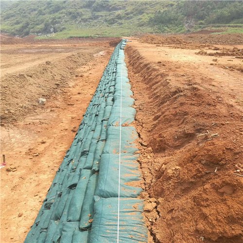 4.装封生态袋:一般应在施工现场去装填生态袋,以节约运输费。同时基础和坡体处理产生的土体或碎石可用于填充生态袋。袋内的填充物取决于实际需要,一般来说适于装袋的填充物包括: 土壤、碎石、有利于植物生长的肥料或上述材料的混合物。一般的封袋方法有:工业用手提缝纫机、塑料扎扣等(建议用户自己选择)。