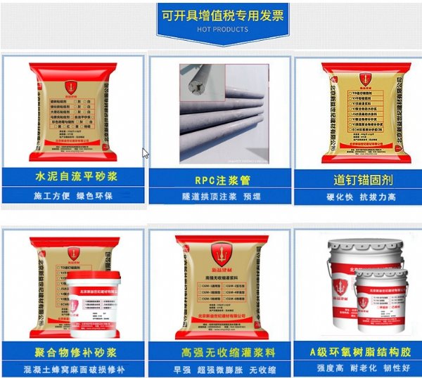 主营业务:高强无收缩灌浆料,环氧灌浆料,环氧修补砂浆 各类防水灰浆,喷涂速凝沥青防水涂料。A级粘钢胶结构胶