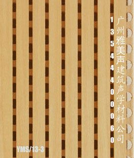 是一种穿孔共振吸声体,在建筑声学装修工程中常用来制作吸音墙面。其基本结构是由中纤板(MDF)经过正面开槽、背面开孔、再用玻纤吸音布作背衬制成。