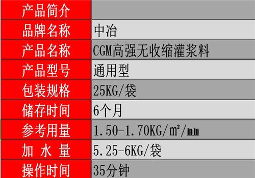 4、现场使用时,严禁在CGM灌浆料中掺入任何外加剂、外掺料。