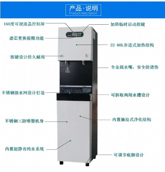 企业重点以开发、生产、销售各类商务节能饮水设备与厨房净水设备为主,为客户提供新时代的商务 及家庭饮水集成解决方案。公司以健康,时尚,环保,节能为核心。本着“诚信、热情、进取、和谐”的 宗旨致力于生产各类节能饮水设备。