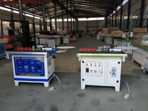 封边机的送料压轮调试,压轮的高低根据工件的宽窄、长短、厚度和压轮磨损的程度,通过压轮升降调整杆和数码表来调节,一般以压轮下表面低于工件上表面3Mm左右为宜(可以通过数字表看)。压的过松,工件在封边机上容易位移,影响封边的质量;压的过紧,压轮容易损坏、压梁和立柱变形较大,手动封边机使用技巧,长时间使用会造成压梁和立柱变形,影响设备精度;同时也会使减速箱电机负载较大,造成跳闸停机,木工手动封边机,严重者损坏设备。、异形、弧位封边,电子时间控制及行程形状控制切带装置,节约封边带。 - 黄岛区汇海通达机械厂