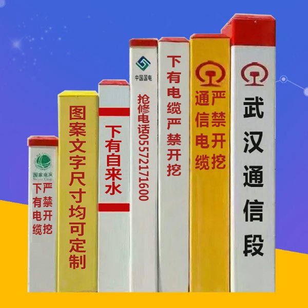 标志桩又称为警示桩、标识桩、标桩,常用于电力、通信、燃气、自来水、铁路地埋管线路径指示标志。用于户外、绿化带、灌木丛、顶管两侧管线路径指示。