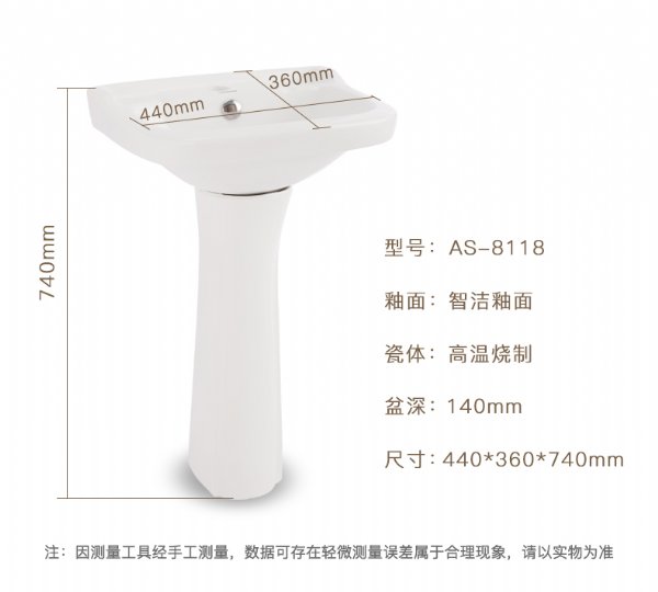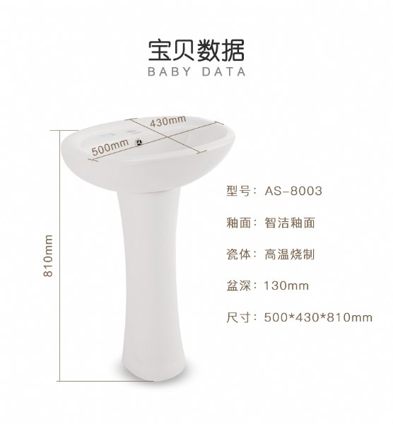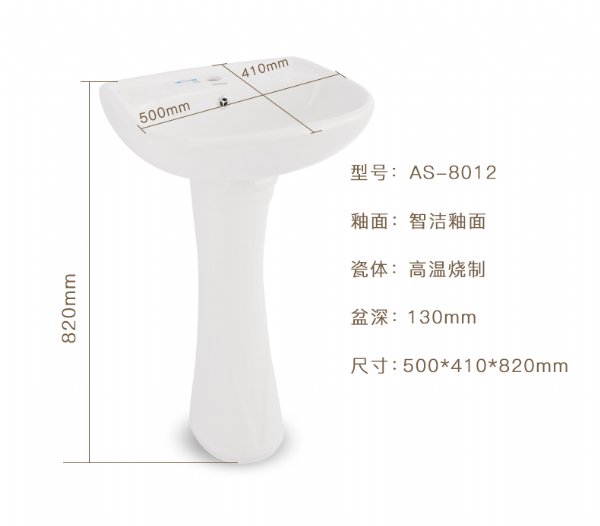 爱尚卫浴厂家直销陶瓷分体式单孔立柱盆