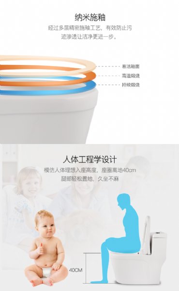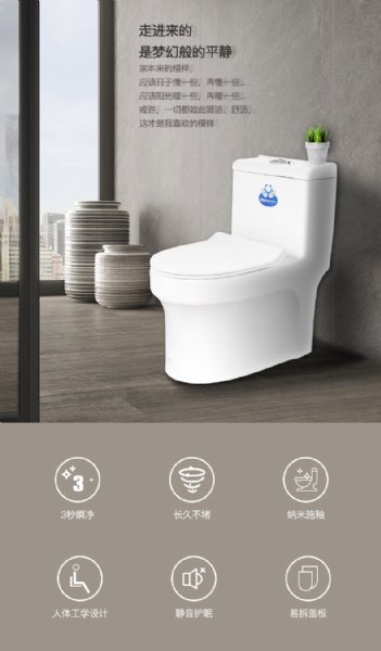 超漩虹吸式全包型连体马桶 360度漩涡冲刷 不留死角 纳米抗污釉面技术,全管道施釉,污物一滑到底,不..