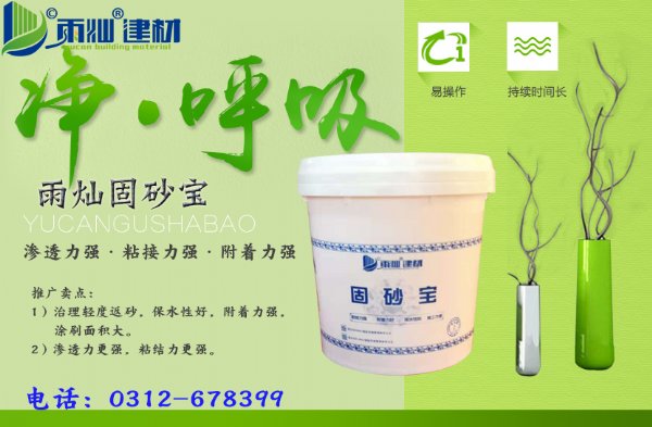 1)将雨灿固砂宝加20%-30%的水稀释后,用滚刷涂布在基层1-2遍(不加水稀释,效果更佳),