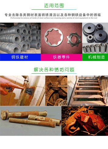 1、常温下使用具有可靠的除锈效果。