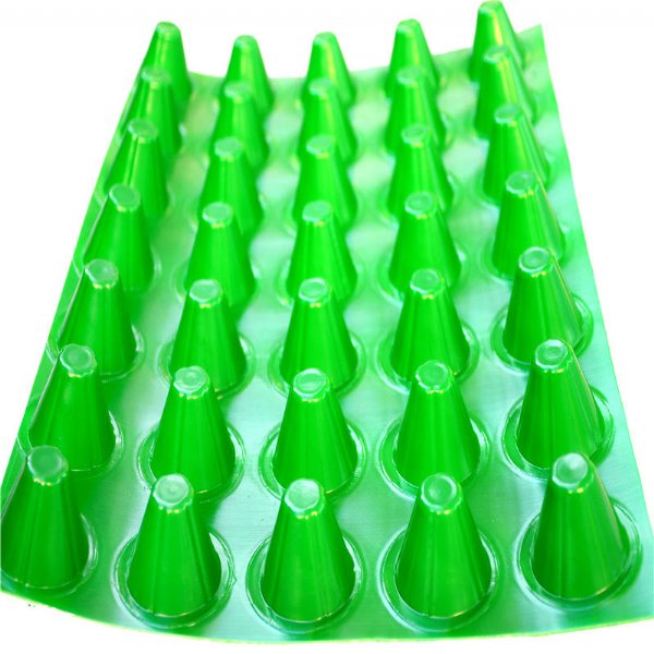 3,耐腐蚀,抗老化,防根刺防排水保护板性能稳定,耐候性能强,高低温无熔裂,自然环境中的酸,碱,盐无法对其造成腐蚀破坏,hdpe防排水板还具备防植物根刺功能,在植物自然生长同时保护建筑防水层。