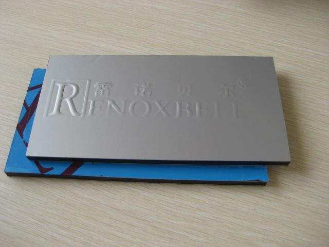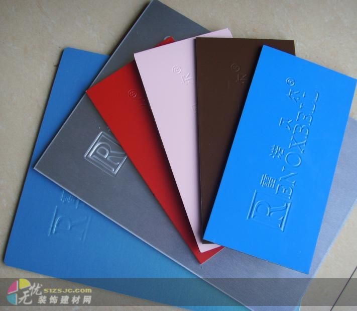 2、正面涂覆氟碳树脂(KYNAR500含量大于70%)涂层,分无金属颜料体系和有金属颜料体系两种。对于室内用铝复合板,其正面可采用聚脂涂层,亦能满足其使用要求。