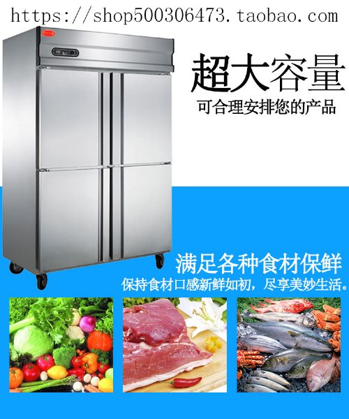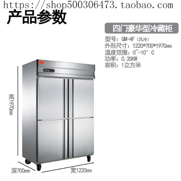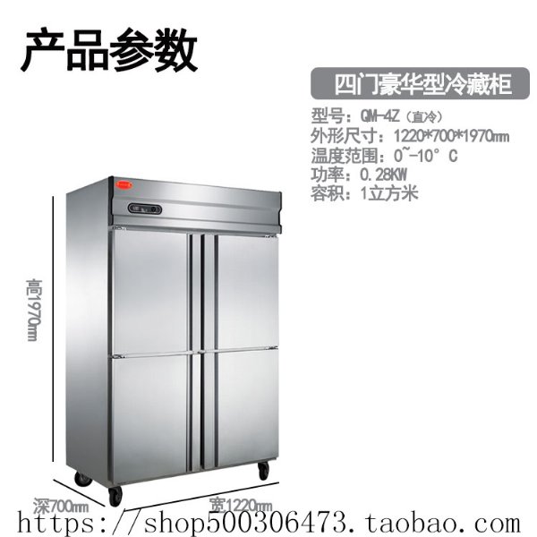 QM-4Z千麦直冷四门冷藏柜 商用厨房冰柜 不锈钢立式豪华冷藏柜