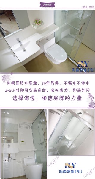 整体卫浴具备的突破性优点: 1、杜绝渗漏 一体成型防水底盘,专利防水反沿和流水坡度设计,无渗漏隐患;..