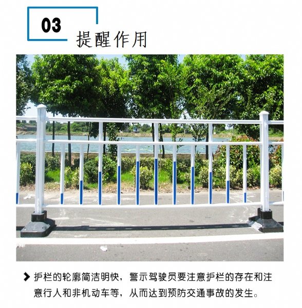 3、市政护栏是目前国内外受欢迎的道路隔离护栏之一。主要用于场区隔离带,市政工程隔离带,园林护栏。市政建设中的公园、草坪、动物园、池湖、道路、及住宅区的隔离与防护;宾馆、酒店、超市、娱乐场所的防护与装饰。