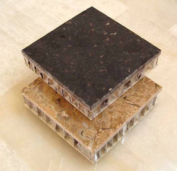 铝蜂窝复合板表面为3-5mm 厚度的天然石材,以轻质铝蜂窝为基材,完全克服了天然石材的各个缺点,是一种具有更优越性能和更广泛应用领域的新一代建筑石材产品。仿大理石铝蜂窝板即保持了天然石材的绿色、环保、回归自然的时尚装饰效果,又克服了天然石材脆性大易碎,装饰重量大等缺点。在石材超薄片与铝蜂窝的中间介质为高强度纤维过渡层,使产品具有更强的耐冲击性和抗弯强度。石材铝蜂窝复合板中蜂窝内部充满空气,重量特轻,隔声隔热效果良好。