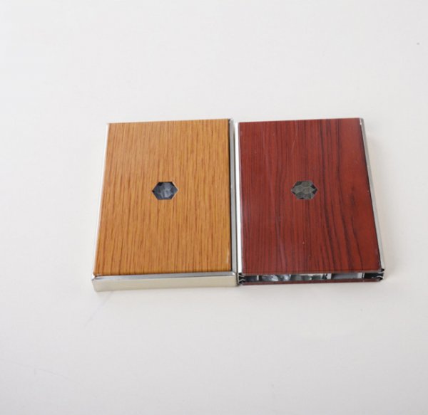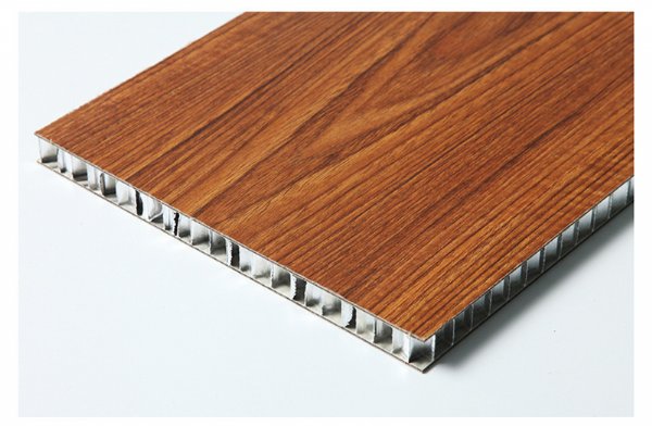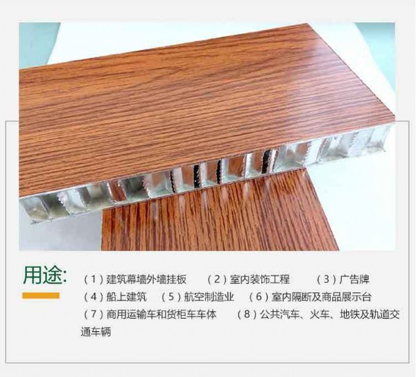 (1)木纹铝蜂窝板由两块较薄的铝质面板牢固地粘结在一层较厚的蜂窝状芯材两面而制成,亦称为蜂窝夹层结构,抗震性能很好,具有良好的附着力和耐候性,长时间保持建筑物外墙的鲜艳