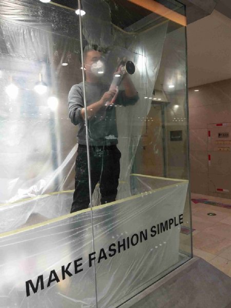 1 喷壶喷水,用刮板清洁要修复区域的玻璃表面。