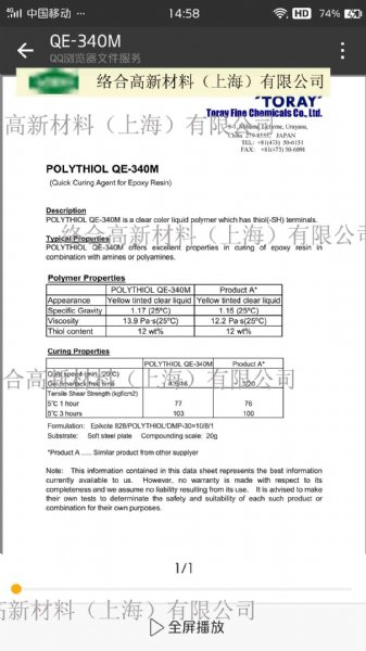 1. 日本东丽低气味聚硫醇QE-340M低温快速固化可搭配混合胺提高速度