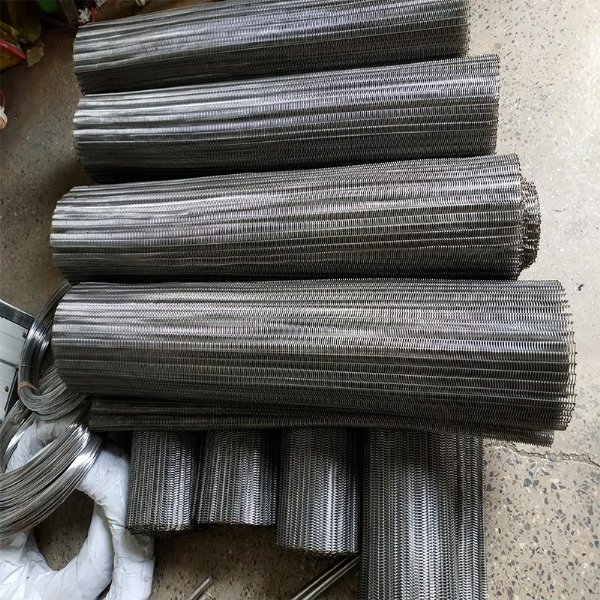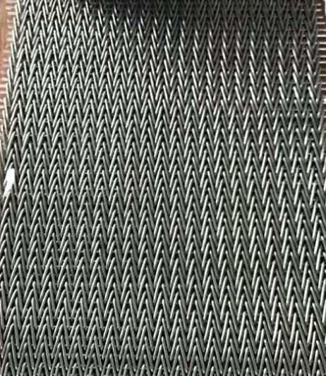 人字型网带采用绕丝机按照材质制作绕丝部件,配合直串丝制作,边缘可以采用焊点式、折边式、链条式、链板式等。