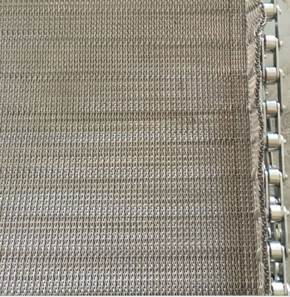 由左右交替的网条通过四根直串条联结而成,精密的编织技术使网带既具有密度高网孔细运行灵活的特点,它对材料和编织技术要求极高。此网带适合于细小承载物的输送线。