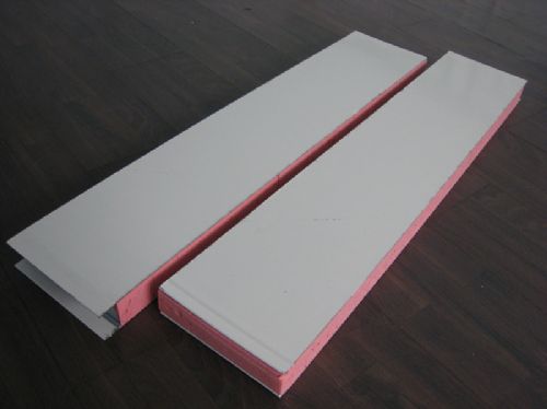 EPS与XPS隔热夹芯板是以彩色涂层钢板为面材,自熄聚苯乙烯(挤塑式聚苯乙烯保温板)为芯材,用固化胶连续成型机内加热加压复合而成的超轻建筑板材。具有自重轻(为混凝土屋面重量1/20~1/30),保温隔热(其热系数值为0.034w/mk),施工速度快(无温作业,不作二次装修)的特点,是一种集承重、保温、防水、装修一体的新型围护结构材料。