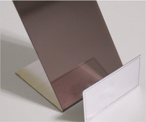 不锈钢表面经过研磨抛光,表面光亮如镜,照物映人,俗称镜面8K,其具有抗腐蚀性;且镜面板材是加工后续彩色或蚀刻板材的基板。主要应用于各类装潢或金属光学产品用途。