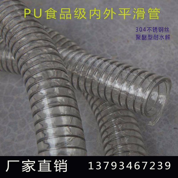 pu聚氨酯304不锈钢丝内外平滑软管耐高温透明食品级塑料管